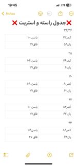 | ۱۰۴ الی ۱۰۵ سانت | 82 الی 84 سانت | 42 |
