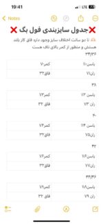 | ۱۰۴ الی ۱۰۵ سانت | 82 الی 84 سانت | 42 |