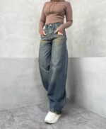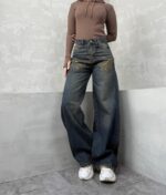 شلوار نیم بگ آبی گازوئیلی کد محصول : ۴۱۴۷
