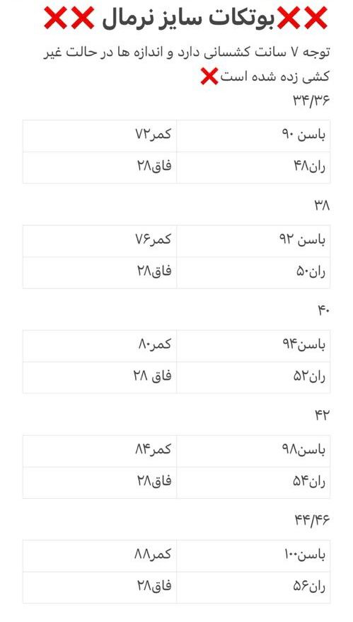 | ۱۰۴ الی ۱۰۵ سانت | 82 الی 84 سانت | 42 |