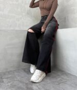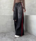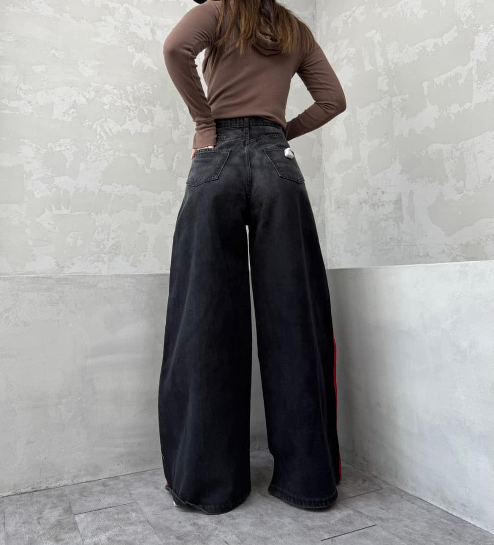 شلوار سوپر بگ ذغالی بغل خط قرمز کد محصول : ۴۱۳۰