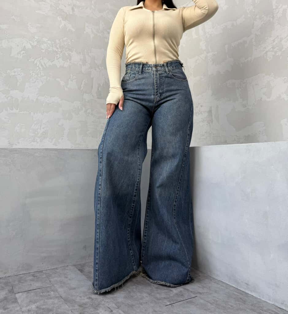 شلوار بالنی آبی تیره زاپدار کد 4086
