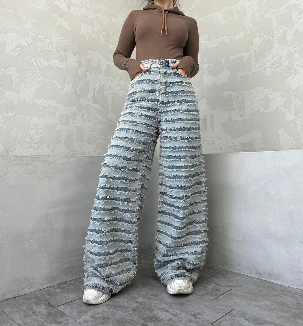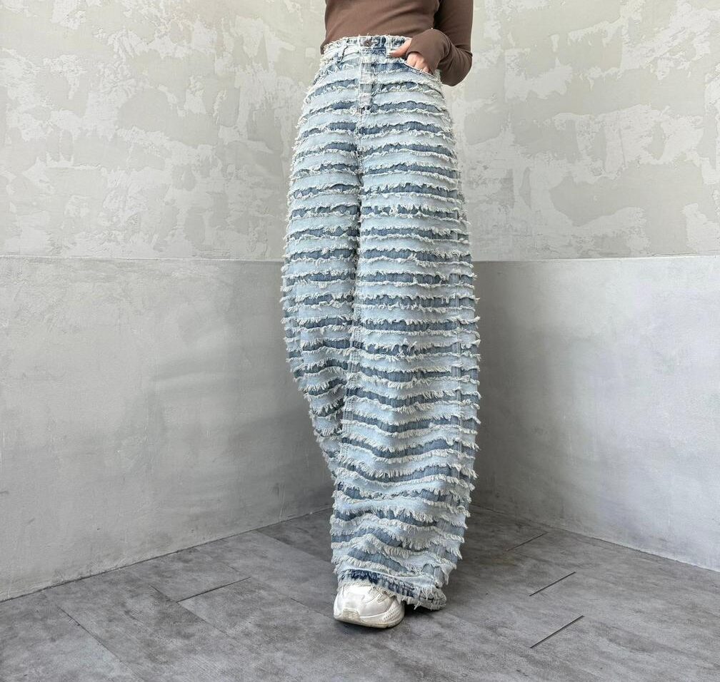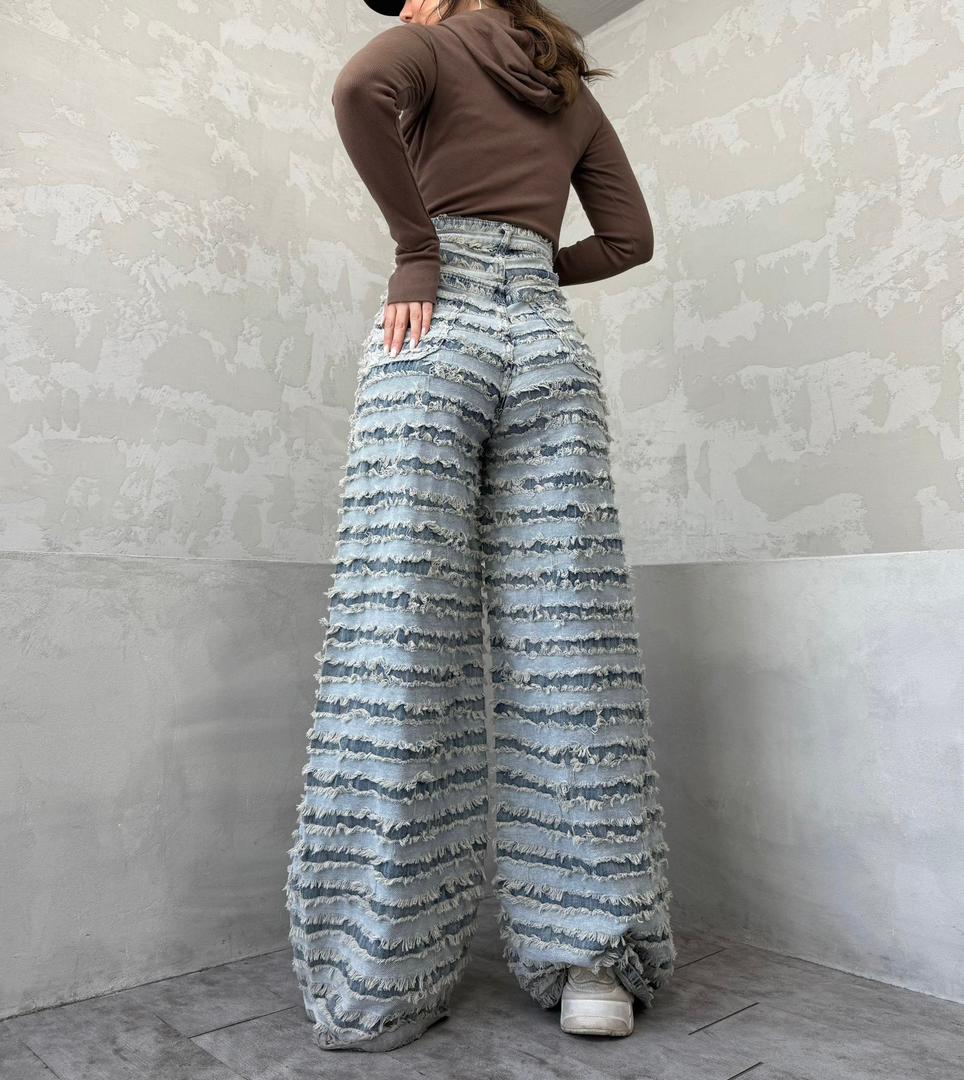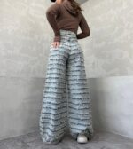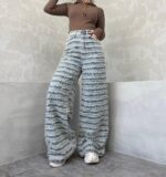 شلوار نیم بگ روشن راسته طرح دار کد ۴۱۱۷