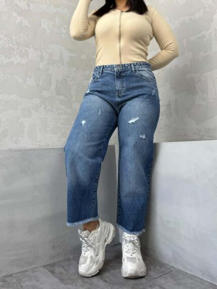 شلوار سوپر بگ خنج دار آبی روشن کد 4049
