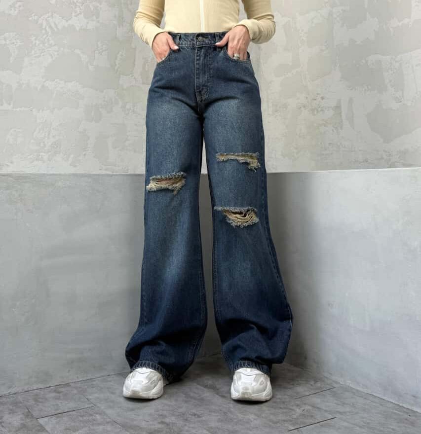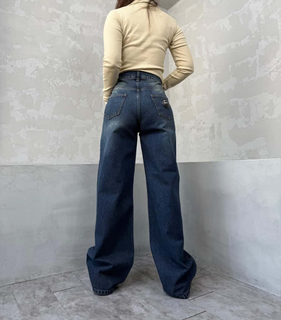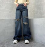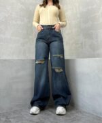 شلوار نیم بگ آبی تیره زاپدار کد 4095