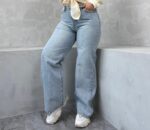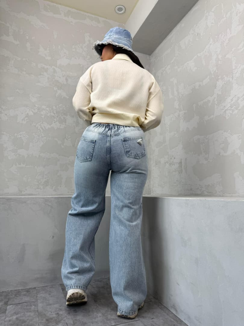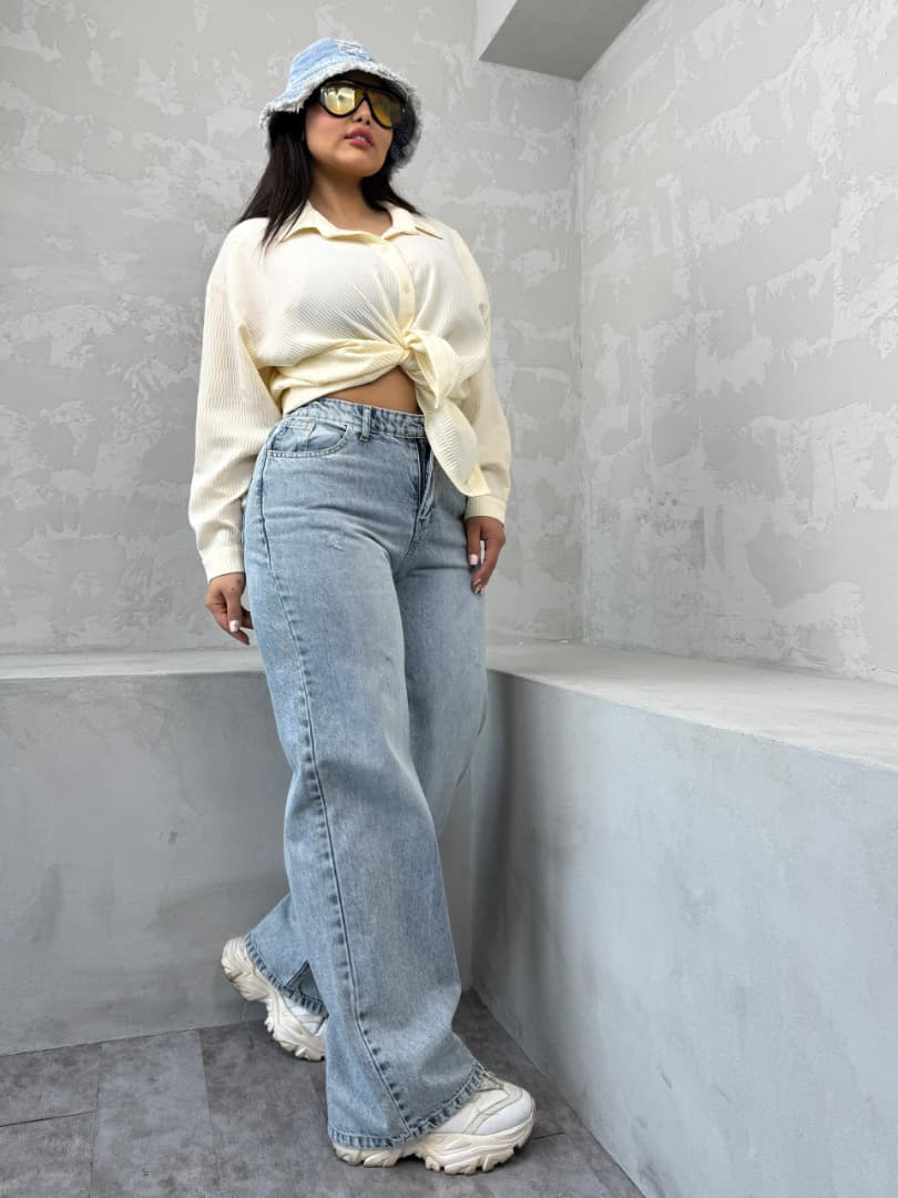 شلوار نیم بگ سایز بزرگ آبی یخی کد 3252