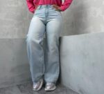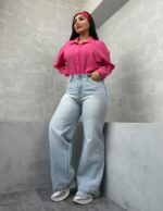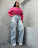 شلوار نیم بگ سایز بزرگ آبی یخی کد 3252