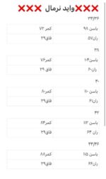 | ۱۰۴ الی ۱۰۵ سانت | 82 الی 84 سانت | 42 |