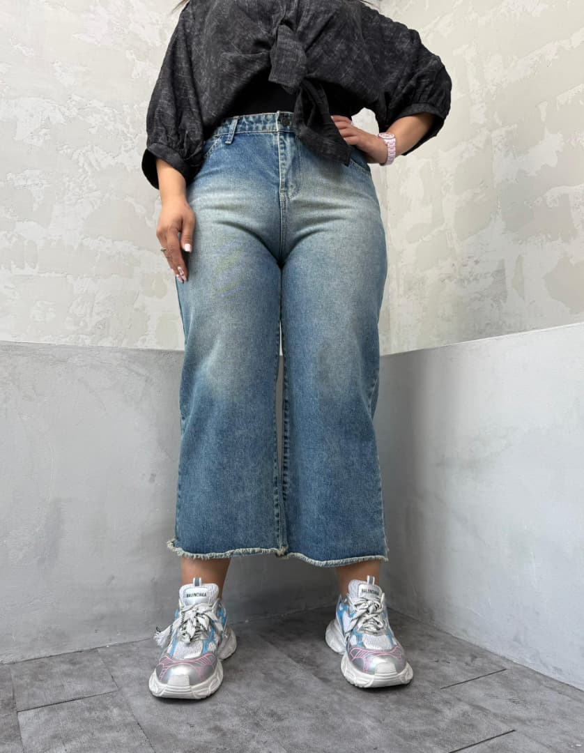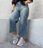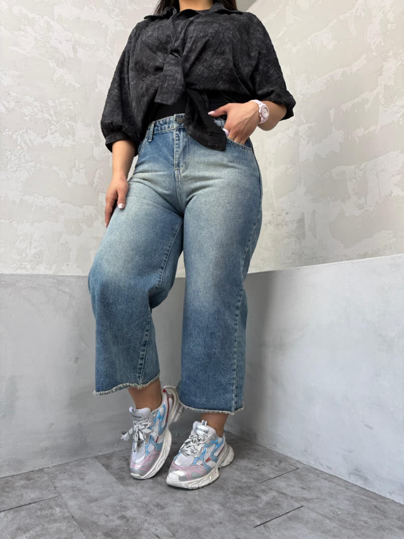 شلوار نیم بگ آبی وسط سایز بزرگ کد 3271
