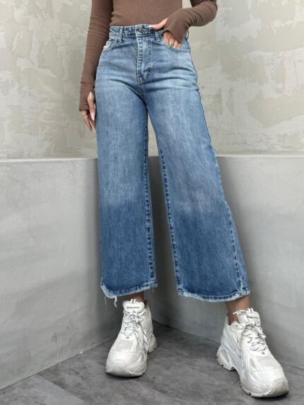 شلوار واید لگ آبی تیره دریایی کد ۴۱۹۵