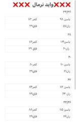 | ۱۰۴ الی ۱۰۵ سانت | 82 الی 84 سانت | 42 |