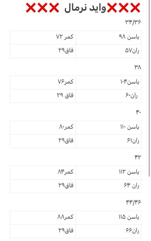 | دور باسن | دور کمر | سایز ایرانی |